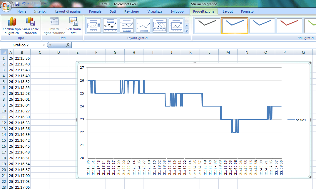 L’idea era quella di ottenere un file testo formato in questo modo: TEMPERATURA – ORA