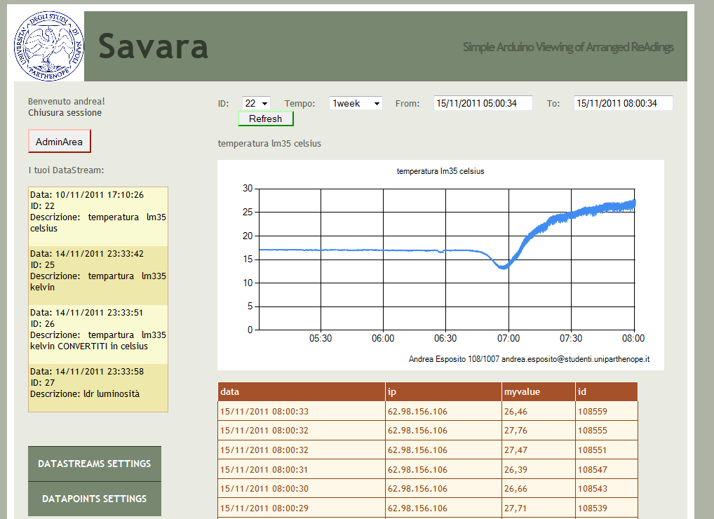 L’ho ribattezzato Savara, acronimo di: Simple Arduino Viewing of Arranged ReAdings….