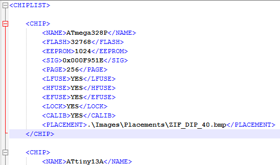 Ora possiamo modificare il file chips.xml in questo modo….