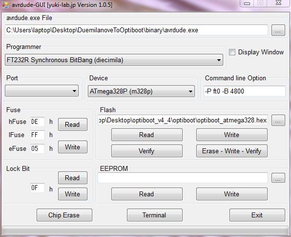 Oggi avevo taaaaaanta voglia di installare il “nuovo” bootloader OptiBoot 4.4  sulla mia duemilanove… risultato: brickata e poi debrickata (dubbi??).