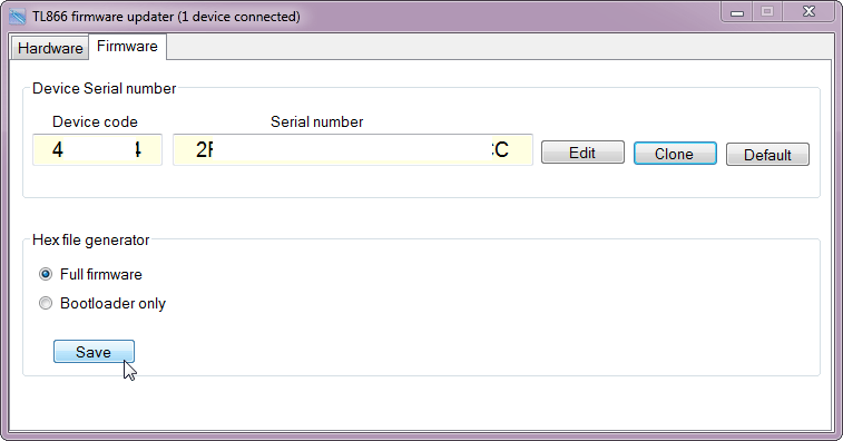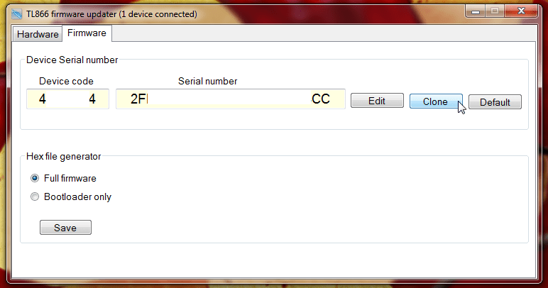 Collegate il vostro minipro, andate sulla linguetta “firmware”, poi “clone”.