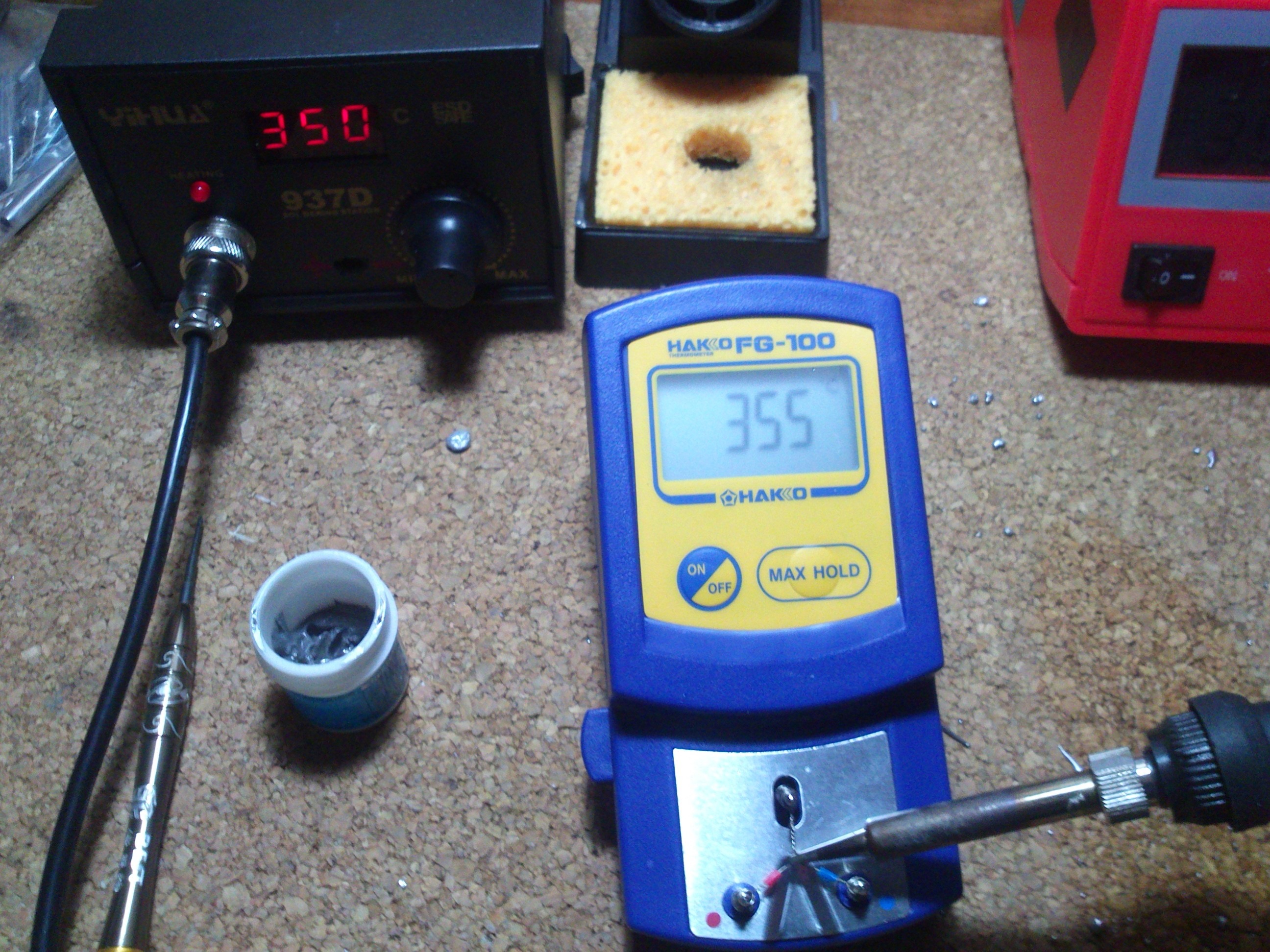 Procuriamoci una sonda K oppure un giocattolino come l’Hakko FG-100 (entrambi ad un prezzo ridicolo su ebay) e attendiamo che le stazioni raggiungano la temperatura desiderata.